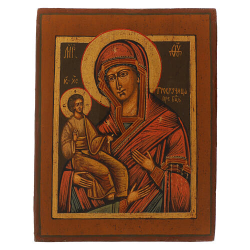 Antique Russian icon of the Mother of God of the Three Hands, 19th century, restored, 12x10 in