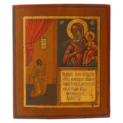 Hand-painted ancient Russian icon on wooden board, Unexpected Joy, restored, 12.2x10.6 in.
