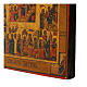 Twelve Great Feasts, restored Russian icon painted by hand on wood, 12x10 in. From the XVIII century onwards, particularly in Russia, iconographic schemes have been developed that unify the twelve main liturgical festivities in a single work of art, centering the composition around the Easter celebration. These icons are particularly significant and are prominently displayed in churches, in the front row of the iconostasis, serving as a form of continuous liturgical and biblical catechesis for t...
