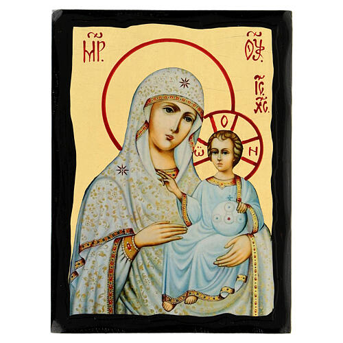 Black and Gold Russian icon of the Mother of God of Jerusalem, 5x7 in. Painting to hang representing the Russian icon of the Mother of God of Jerusalem from the Black and Gold collection.