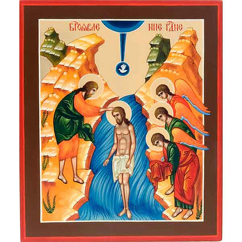 In the middle of the scene, Christ, in the Jordan, who is baptised by Saint John in front of three angels. This icon symbolises the Christnening, the principle of Christian life. This icon has been hand-painted at the Russian Orthodox atelier in Yaroslav, in the north of Russia, according to the strict principles of the Russian iconic tradition. The slight imperfections that can be found on this icon are an added value bearing witness of the craftsmanship process. This icon comes in an elegant blue velvet box with internal satin covering.