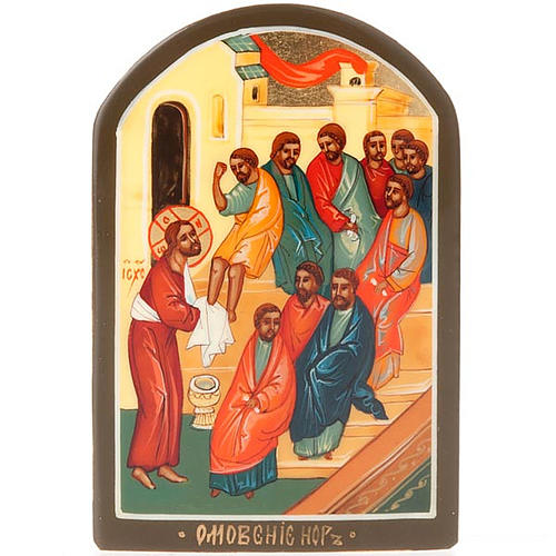Russian icon representing the scene of the foot washing as narrated in the Gospel of John.
