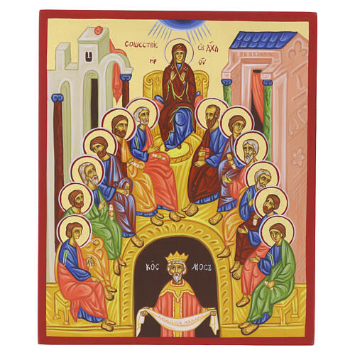 Russian-style linden wood icon, Pentecost, 12x10 in.