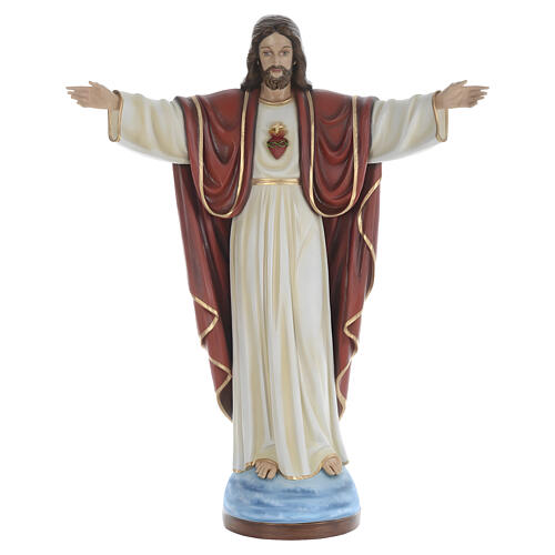 Statue of Christ the Redeemer in painted fibreglass 160 cm for EXTERNAL USE.This fibreglass statue is made by an Italian company with a long-standing experience in the manufacturing of sacred objects, and is painted by hand using oil-based paints. The face, cape and hair of this finely-worked statue are highly-detailed. Given its low weight, it is suitable for being carried around during processions, even outdoors, as it is treated with a kind of paint that enables it to withstand the elements. This item is made, printed and finished entirely by hand.