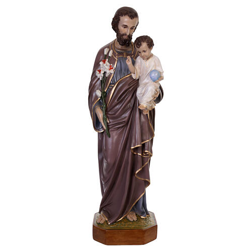 Statue of Saint Joseph with Jesus, 50 in, fibreglass with crystal eyes, by Lando Landi