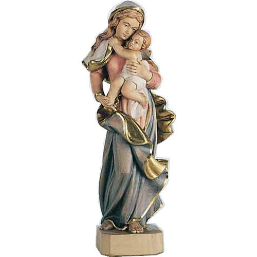 Virgin Mary and baby statue in painted wood, baroque style 42cm