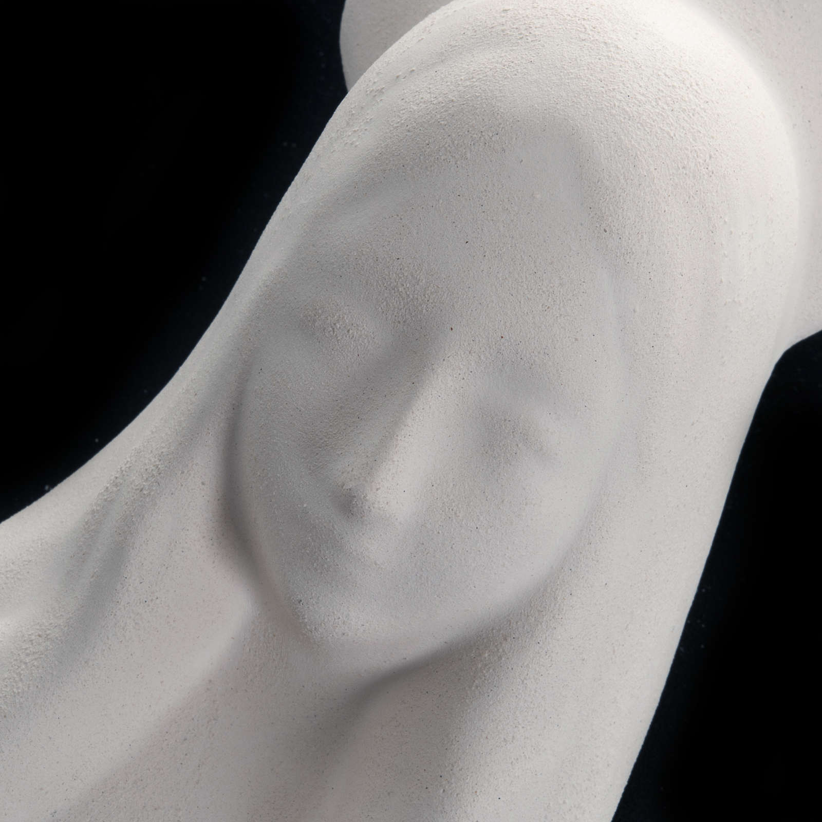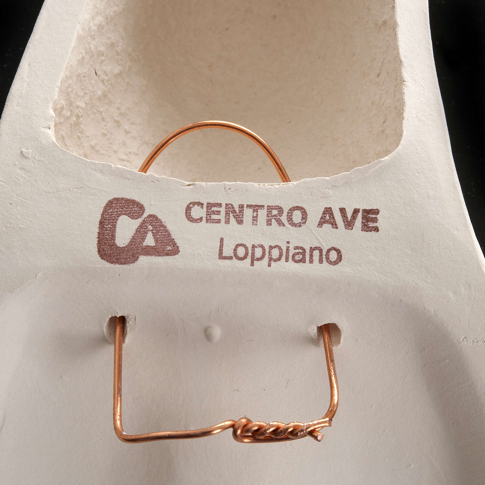 Stylized statue in fireclay reproducing Virgin Mary annunciation. This statue is firstly hand worked, then baked at more than 1000° degrees and hand finished.