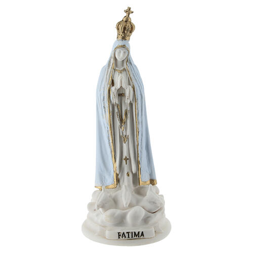 Our Lady of Fatima resin statue on a cloud with doves, 4 in