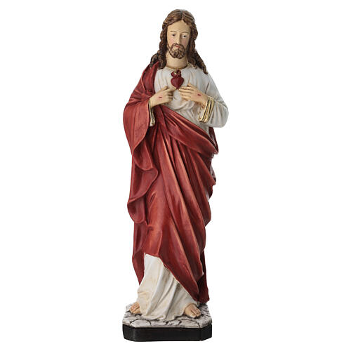 Sacred Heart of Jesus statue in resin and plaster powder, red, 16 in.