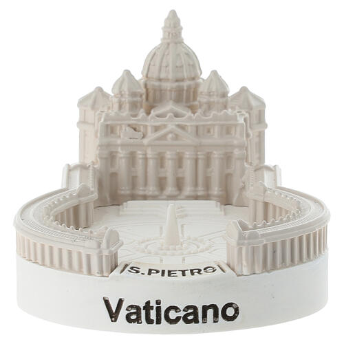Compact reproduction of St. Peter's Basilica with its colonnaded square, crafted in resin with a matte finish.