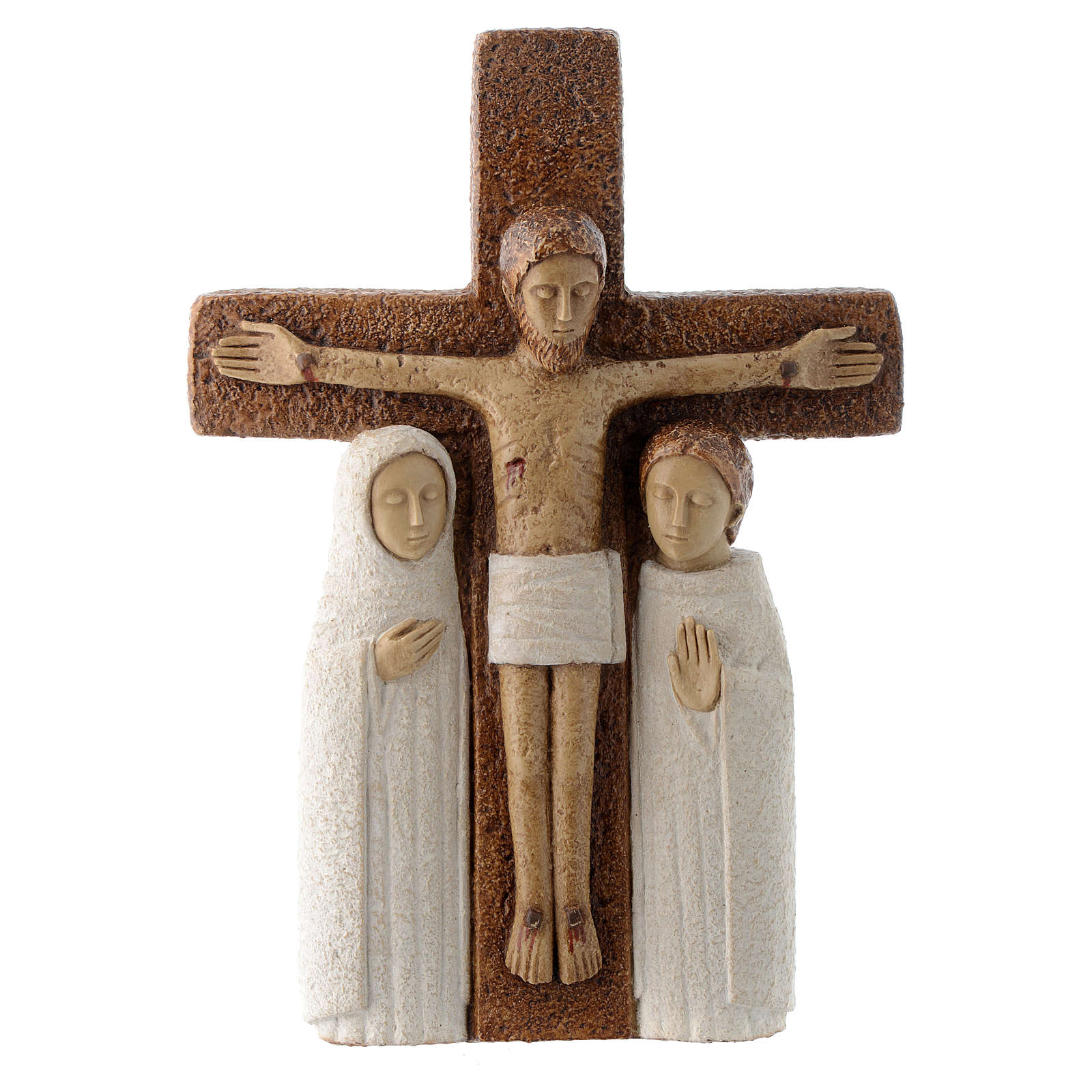 The Compassion, Jesus during the terrible moment of his passion is supported by John and Mary, they suffer with Him and their sufferings generates a sense of love and peace. The characters in this marvellous statue have their eyes closed, a sign of their sorrow, accepted without complaints and with humility. This crucifix is entirely hand-made and hand-painted by the nuns of the monastery of Bethleem.