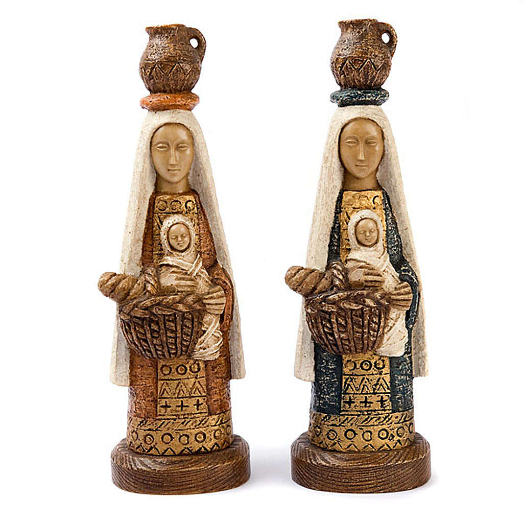 Mary with baby Jesus in her arms, a daily life moment, at those times like today. This simple and daily moment is at the same time elegant and splendid. This cast is hand-painted by the artisan nuns of the Monastery of St. Bruno.