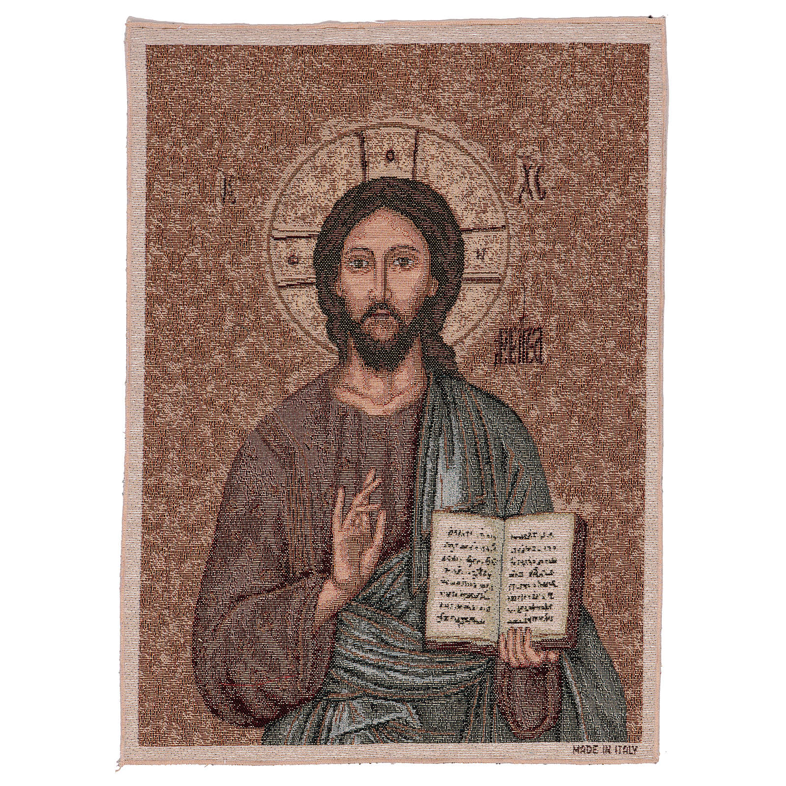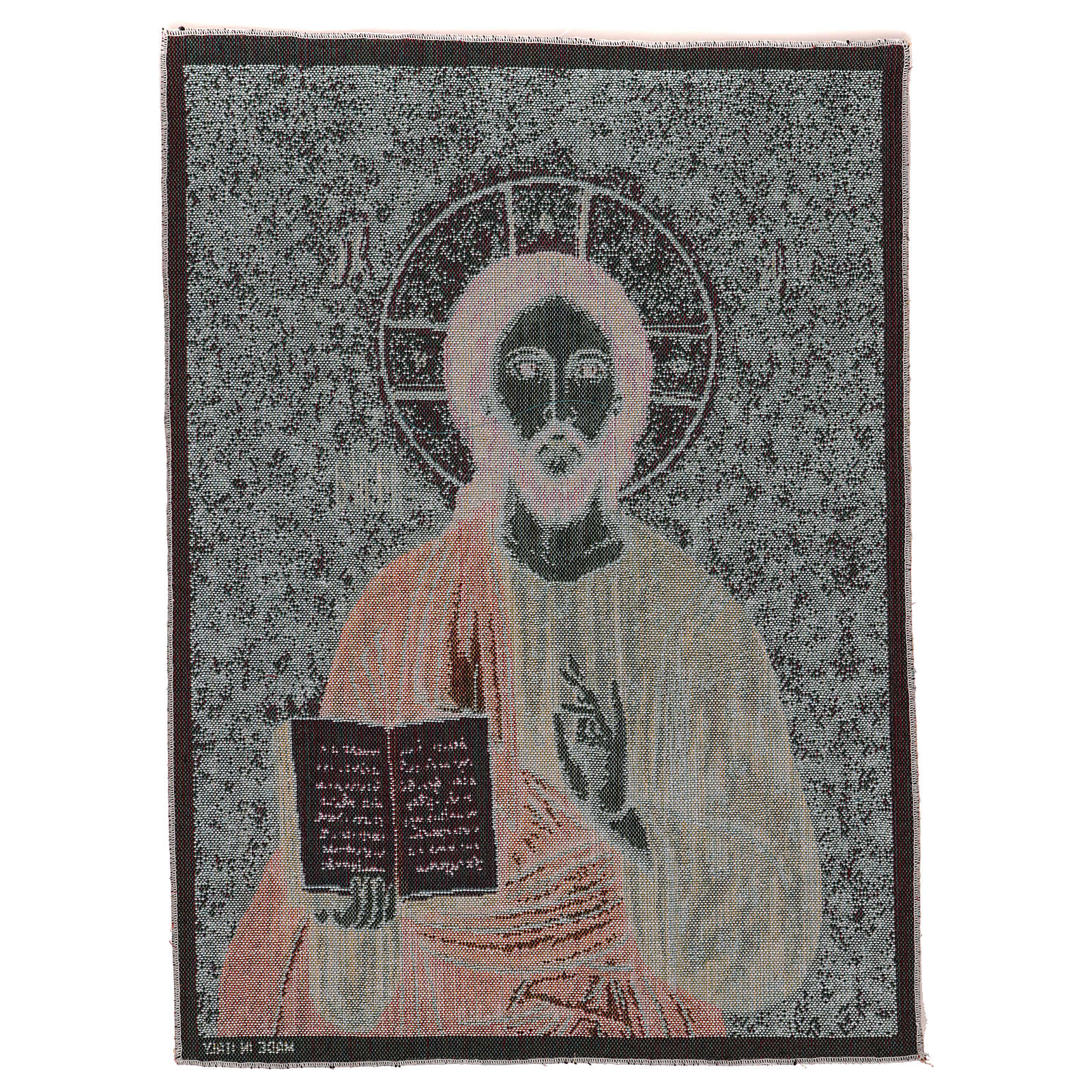 Christ Pantocrator tapestry 50x40 cm. Tapestry in jacquard fabric finished by hand, entirely made in Italy.