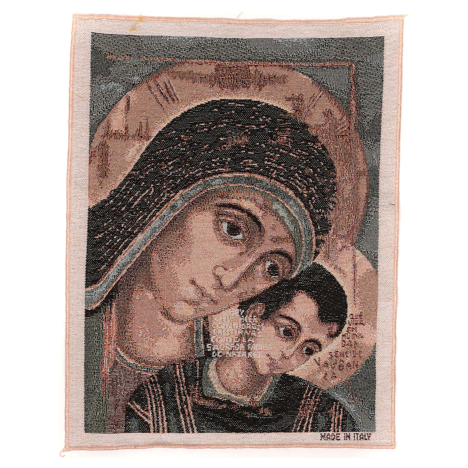 Our Lady of Kiko tapestry 40x30 cm. Tapestry in jacquard fabric finished by hand, entirely made in Italy.