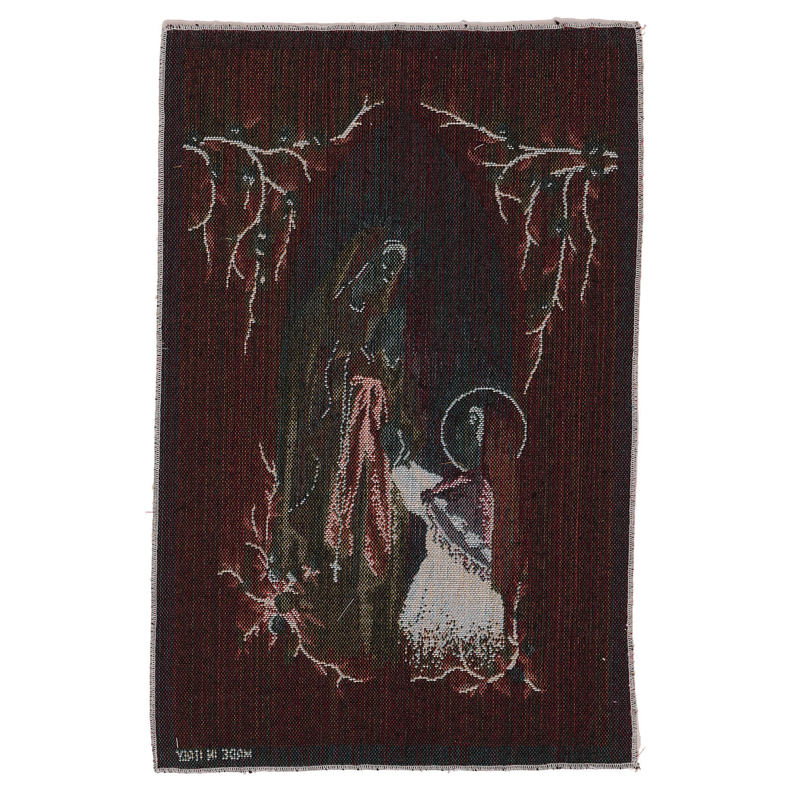 The Apparition of Lourdes in recess tapestry 50x30 cm. Tapestry in jacquard fabric finished by hand, entirely made in Italy.
