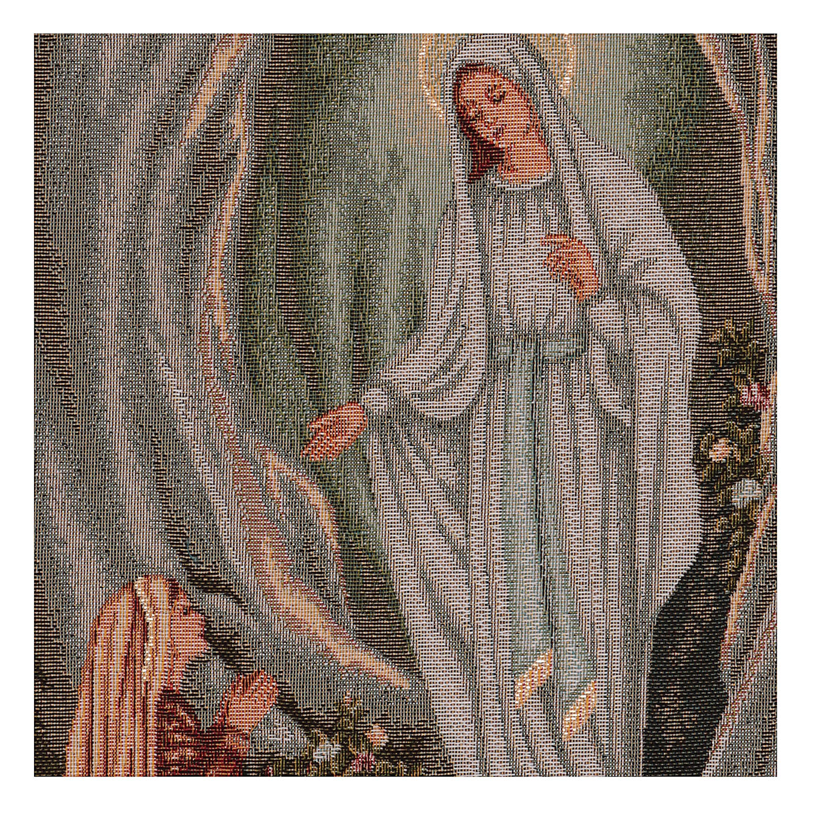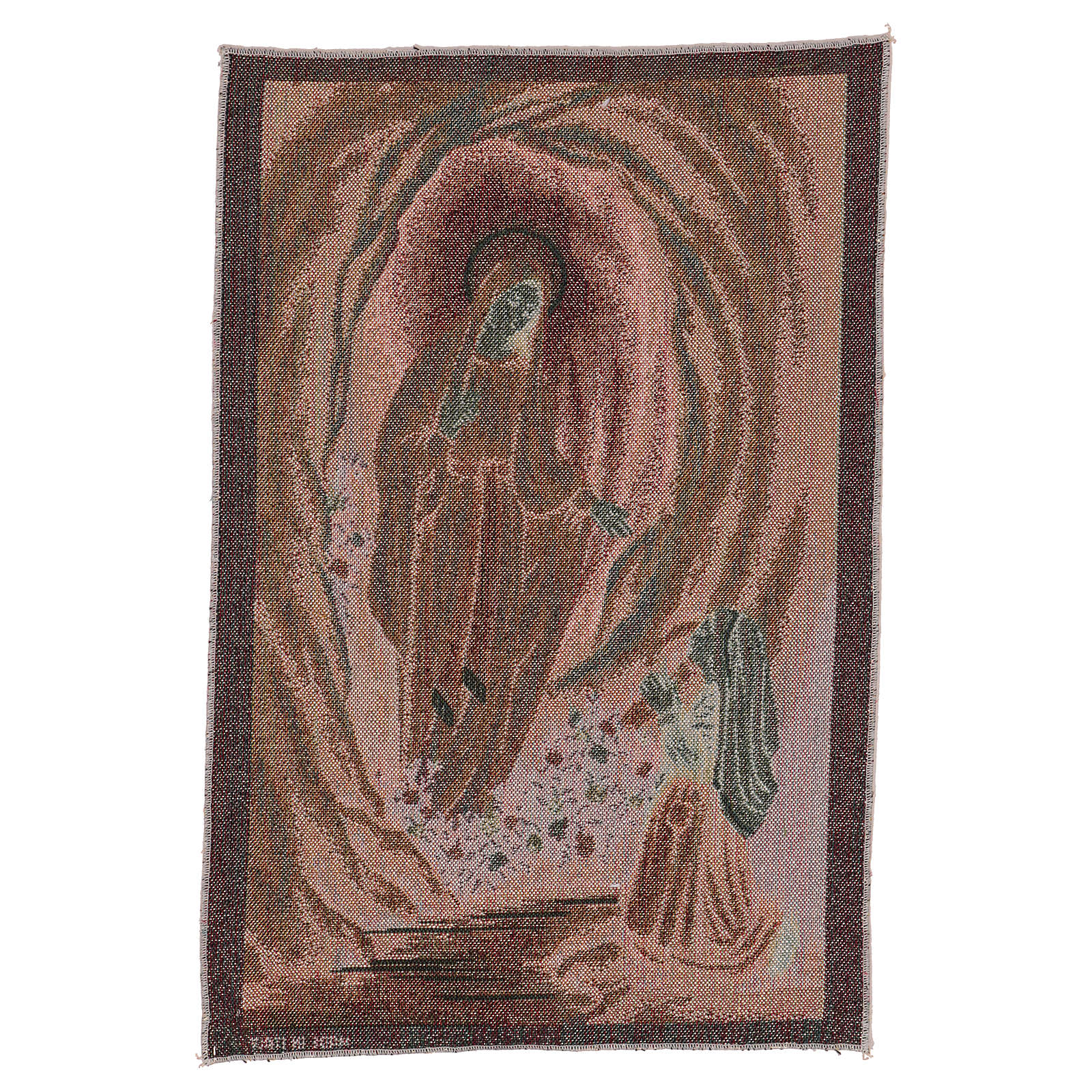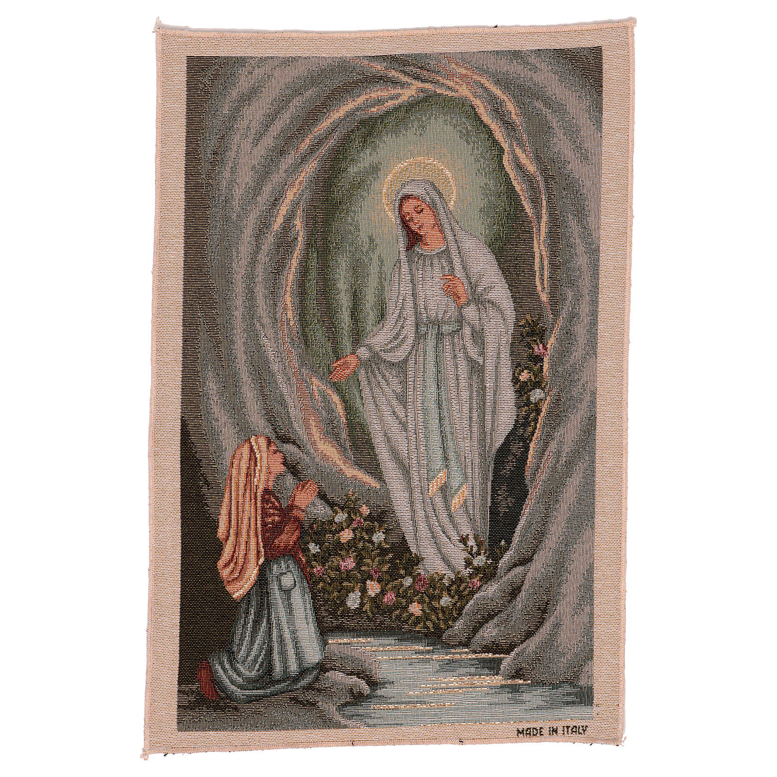 The Apparition of Lourdes tapestry 40x30 cm. Tapestry in jacquard fabric finished by hand, entirely made in Italy.