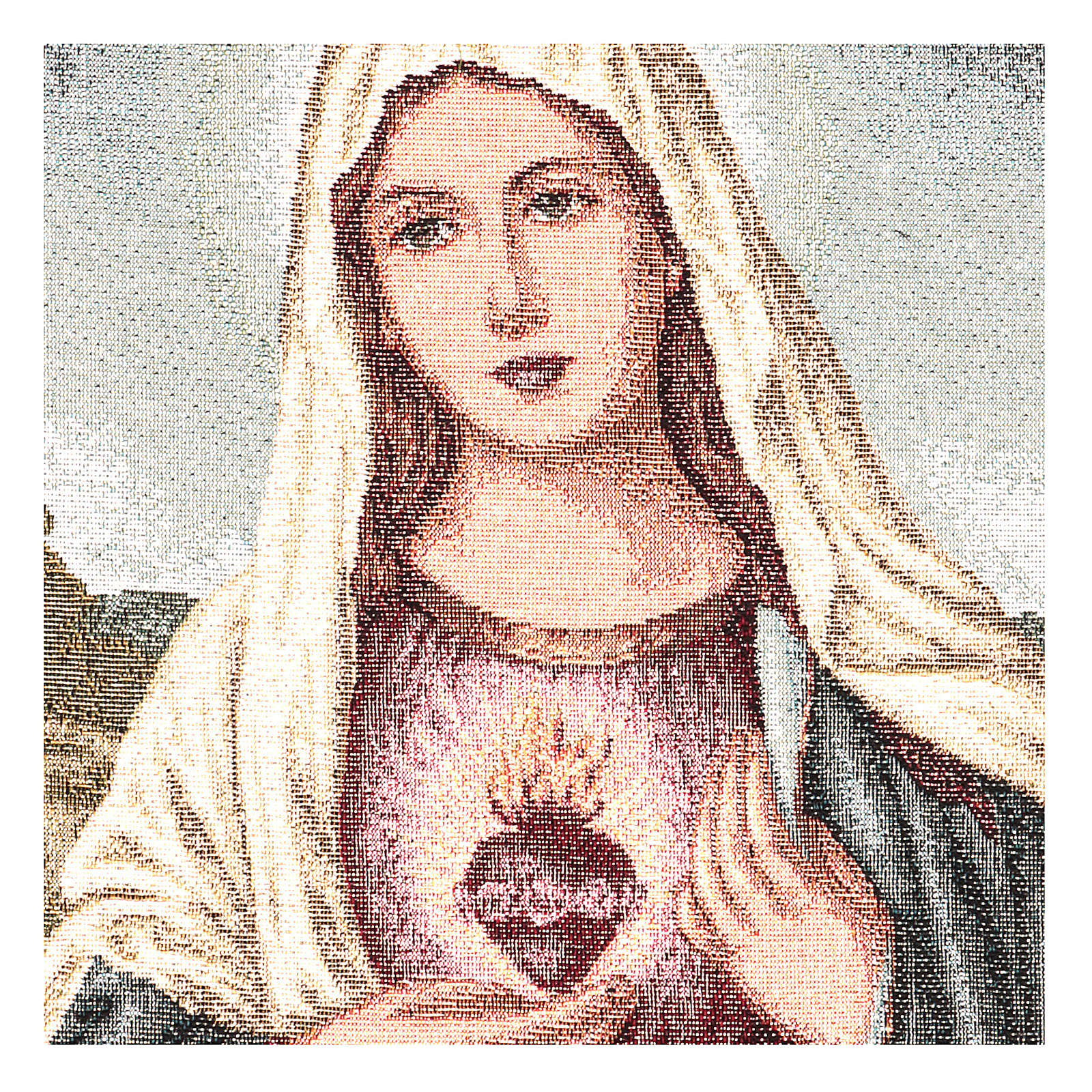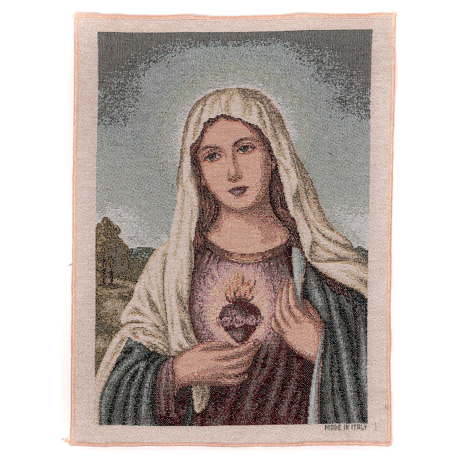 The Sacred Heart of Mary with landscape tapestry 40x30 cm. Tapestry in jacquard fabric finished by hand, entirely made in Italy.