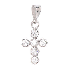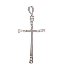Cross pendant in 18 kt white gold with white round strass 0.9 gr
