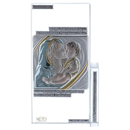 Picture in crystal with silver foil showing the Mother and Son 17.5x9.6 cm.Perfect gift for a Baptism.