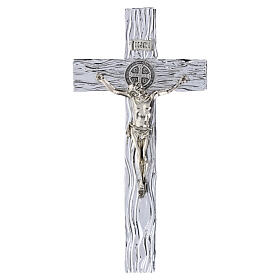 Saint Benedict cross with silver-plated wood-effect finish, 6x3 in