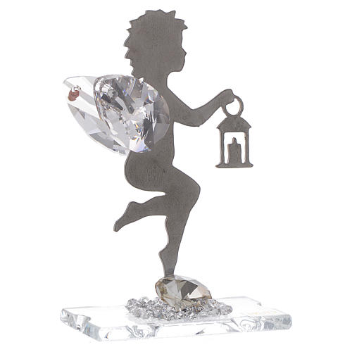 - Angel bombonniere with lantern in stainless steel and crystal 7 cm