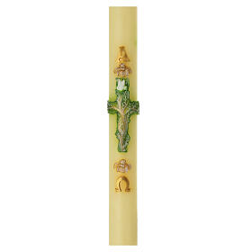 Easter candle with leaves and golden cross 80x8 cm