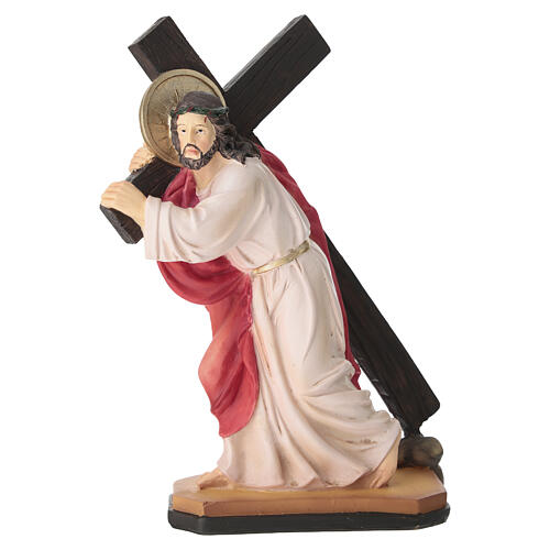 Jesus carrying the cross to Calvary, hand-painted resin, 20 cm