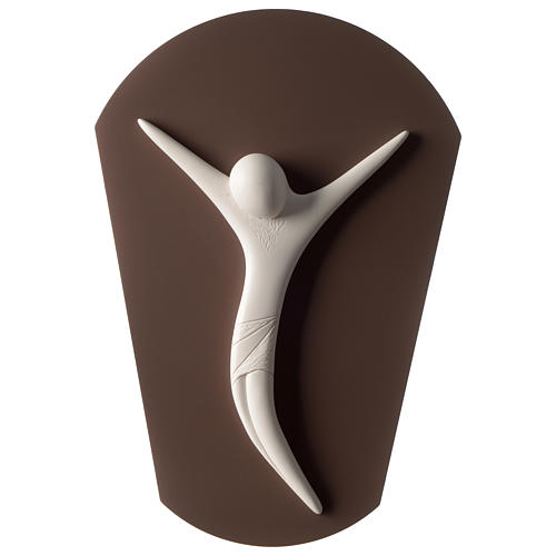 Crucifix, stylized bas-relief in white resin 45 cm