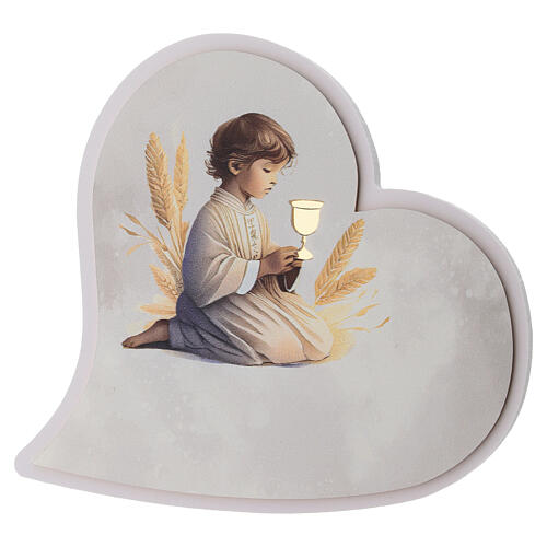 First Communion favour, heart-shaped air freshener with kneeling child, 5.5x6x2 in.