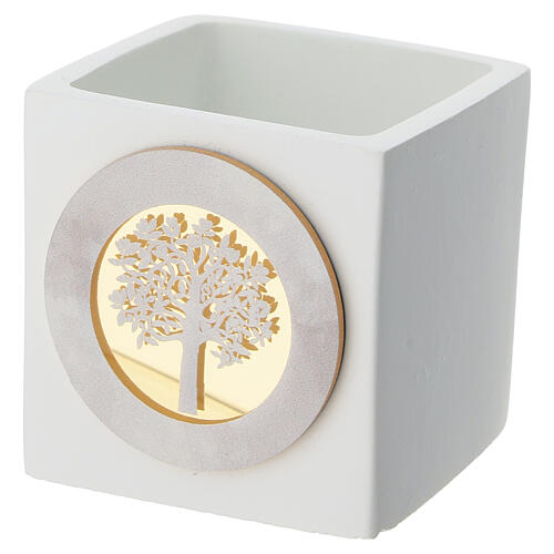 Party favour, white cubic jar with Tree of Life, 2.5x2.5 in, made in Italy