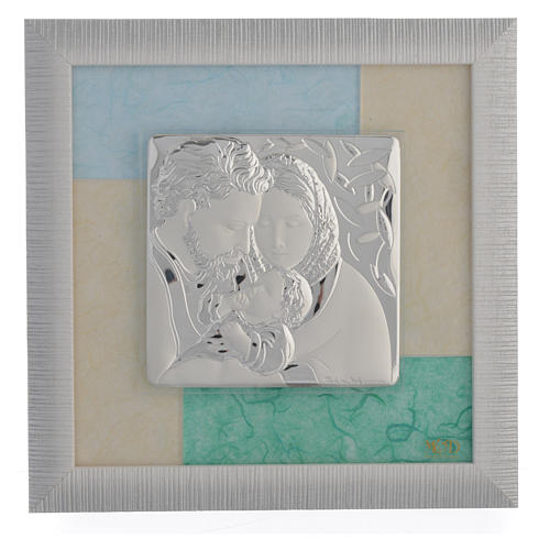 - Picture with Holy Family, sky blue and green in silver 23.5x23.5cm
